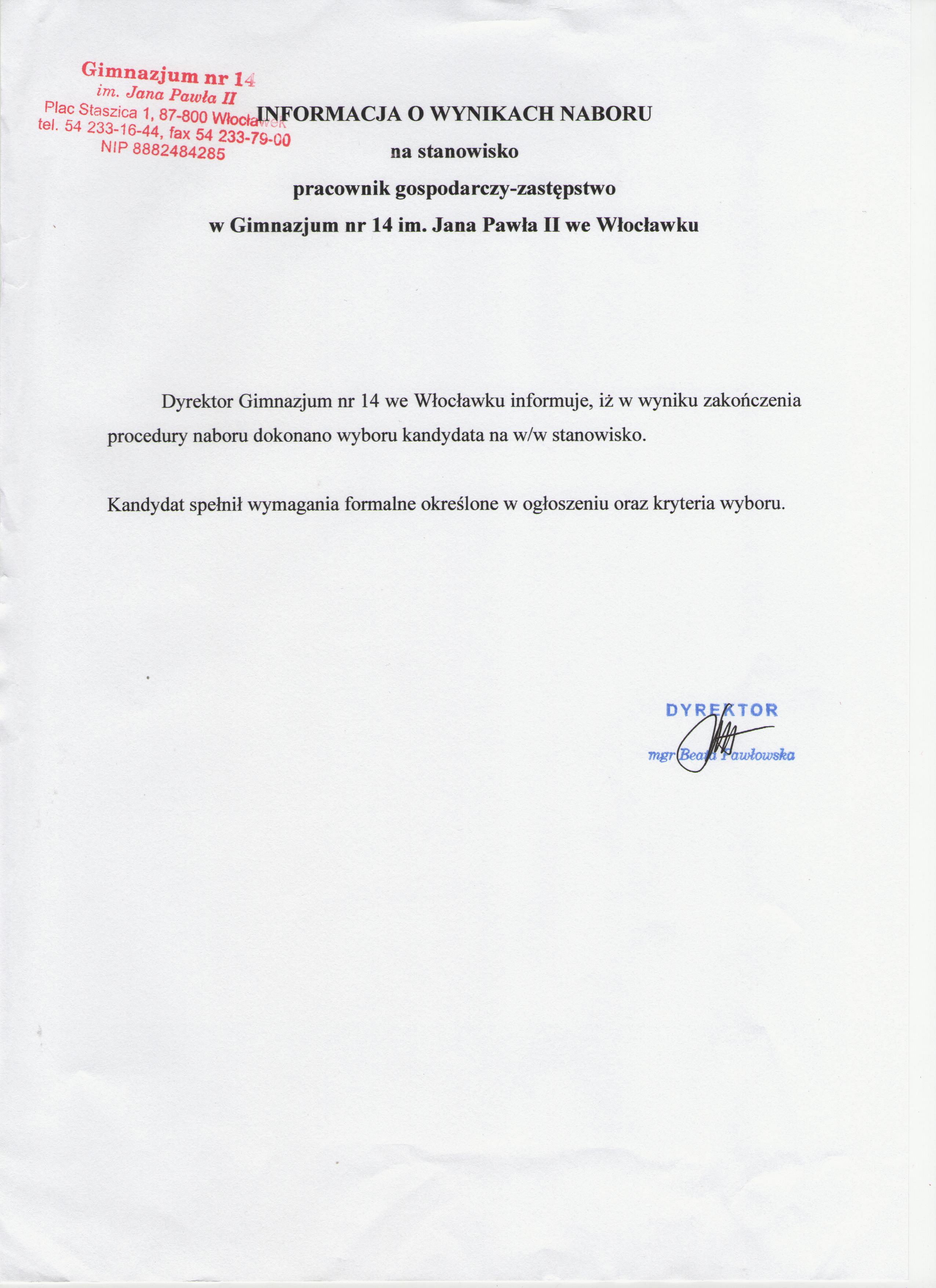- Miejsce składania dokumentówsekretariat Gimnazjum nr 14 im. Jana Pawła II we Włocławku